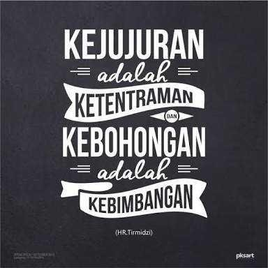 Diriwayatkan dari ‘Abdullah bin Mas’ud ra., Rasulullah saw. bersabda, “Hendaklah kamu berlaku jujur karena kejujuran menuntunmu pada kebenaran, dan kebenaran menuntunmu ke surga. Dan sesantiasa seseorang berlaku jujur dan selalu jujur sehingga dia tercatat di sisi Allah Swt. sebagai orang yang jujur. Dan hindarilah olehmu berlaku dusta karena kedustaan menuntunmu pada kejahatan, dan kejahatan menuntunmu ke neraka. Dan seseorang senantiasa berlaku dusta dan selalu dusta sehingga dia tercatat di sisi Allah Swt. sebagai pendusta.” (H.R. Muslim)